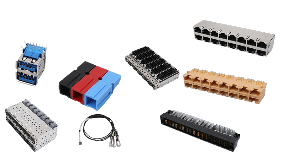 網(wǎng)絡(luò)連接器 (集成RJ45系列和普通RJ45系列)、高速連接器(SFP/QSFP/DSFP/CFP系列)、電源連接器、高速DAC和背板高速線纜組件、BTB連接器、網(wǎng)絡(luò)變壓器、RJ11連接器系列、USB&TYPE-C系列、精密五金件等。公司產(chǎn)品廣泛應(yīng)用于包括“5G/6G”在內(nèi)的網(wǎng)絡(luò)、通訊等行業(yè),并致力于滿(mǎn)足新能源汽車(chē)、高端裝備、智能顯示、軌道交通、機(jī)器人等高精尖終端領(lǐng)域?qū)B接器市場(chǎng)的需求。